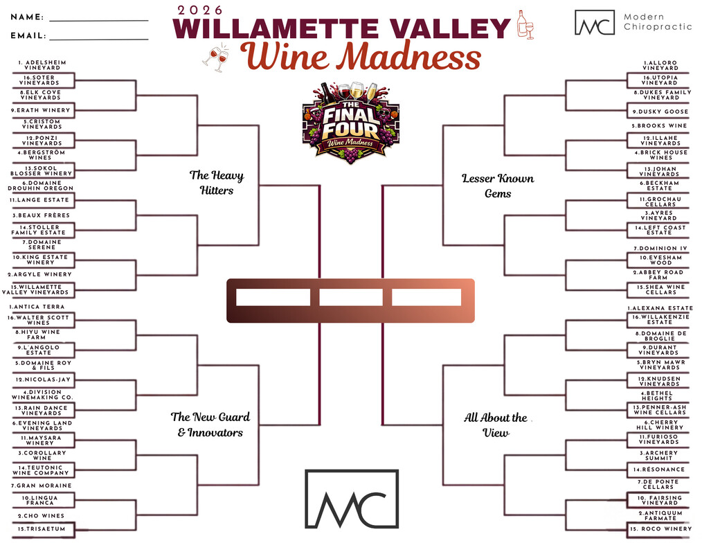 This March, Modern Chiropractic is bringing a twist to Oregon’s wine country with our first-ever Willamette Valley Wine Madness bracket.